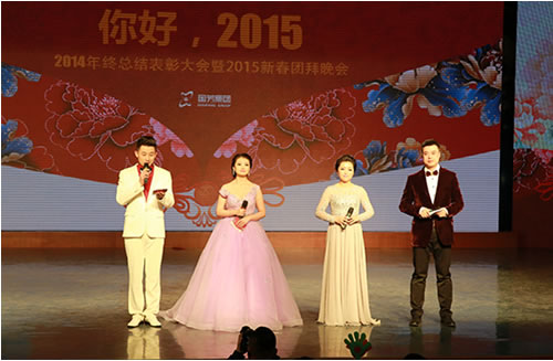 2015年2月9日晚,在蘭州37中(蘭州女子專業(yè)中等專科學(xué)校)5樓藝術(shù)廳內(nèi),國芳集團(tuán)“你好,2015”2014年終總結(jié)表彰大會暨2015年新年盛典溫馨開演。恰逢國芳集團(tuán)成立十五周年,晚會現(xiàn)場充滿了溫馨、喜慶和感動。晚會延用了去年的大型LED顯示屏、多組VCR、微信平臺等廣受好評的元素,并創(chuàng)新的融入了中華名族傳統(tǒng)的禮儀文化,漢唐古典舞的壯觀優(yōu)美,員工孩子們《弟子規(guī)》的可愛表演,都在為晚會添加了精彩度的同時,將傳承禮儀所需要的高尚美德這一思想深入的傳達(dá)到每一位員工的心中。員工們精心準(zhǔn)備的節(jié)目一個比一個精彩,極具藝術(shù)表現(xiàn)力和觀賞性,董事長也被熱烈的氣氛所感染,親自上臺演唱了兩首歌曲,把晚會推向了高潮。最后,國芳集團(tuán)年終晚會在祥和熱烈的氣氛中落下了帷幕。讓我們共同期待來年的精彩!