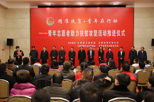 2016年1月8日上午,由共青團甘肅省委等單位主辦的甘肅省“精準扶貧•青年在行動”—青年志愿者助力扶貧攻堅活動推進儀式在蘭州寧臥莊賓館舉行。省委副書記歐陽堅、省政協(xié)副主席李沛文出席儀式。甘肅國芳工貿(mào)集團董事、蘭州國芳百貨董事長張春芳女士參加了本次儀式,并代表公司向雙聯(lián)貧困村捐贈價值600萬元愛心衣物。